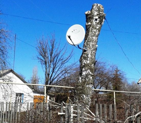 – На дереве можно ставить и тарелку и простую эфирную. Ствол дерева не вращается вокруг своей оси, а раскачивание не приводит к потере сигнала.